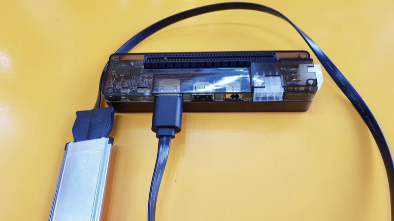 Gắn GPU vào khe PCIe trong hộp eGPU và kết nối nguồn.