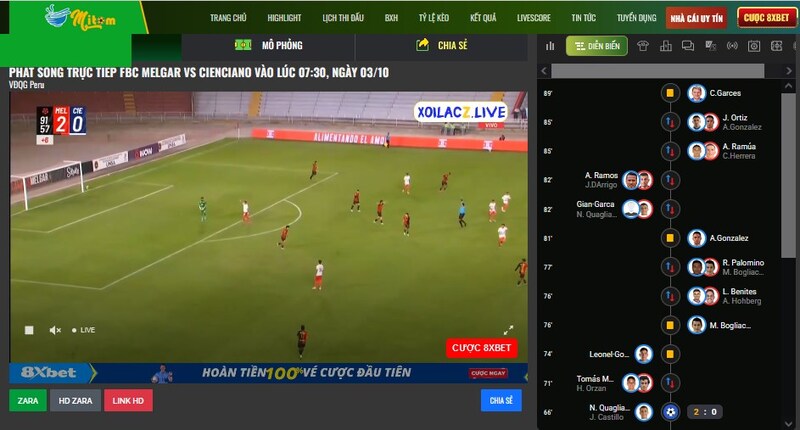 - Chọn trận đấu từ các thẻ “Live, BLV Mitom, trận HOT…